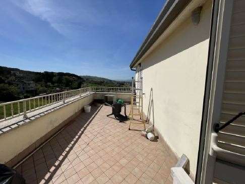 Appartamento al piano terzo composto da soggiorno con angolo cottura, una camera, un bagno, un piccolo disimpegno, ampio terrazzo e garage al piano primo sotto strada di 21 mq. LIBERO.