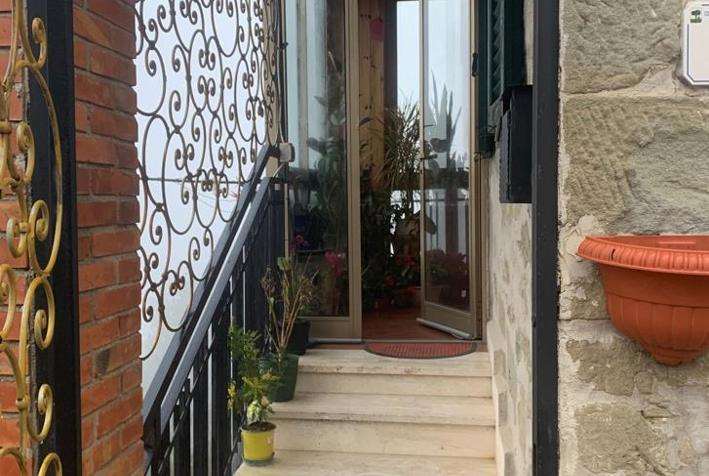 Al piano terra, con ingresso lato strada statale, troviamo l'abitazione costituita da un portico (ora chiuso), un piccolo soggiorno, una cucina e una camera, mentre al piano primo, raggiungibile da scala interna posta nel soggiorno del piano terra, troviamo 3 camere, 1 bagno oltre che un disimpegno.