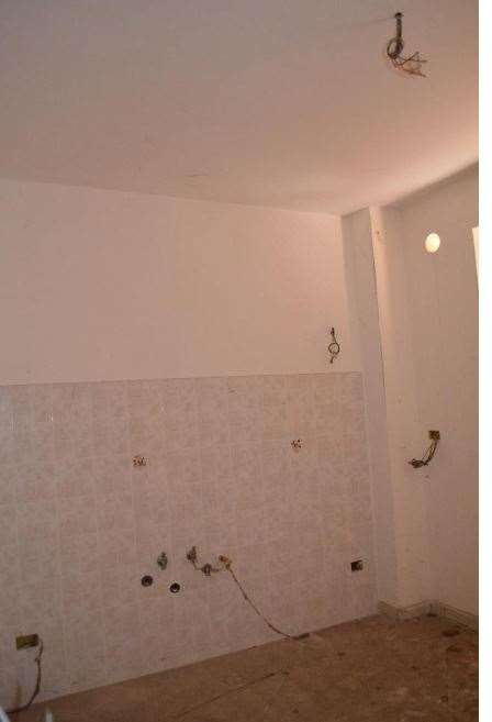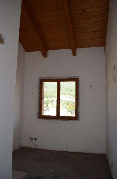 L'immobile è diviso in: zona giorno con: ingresso-soggiorno, cucina, wc e antiwc, vano scale, un piccolo balcone oltre una tettoia e una piccola rata di terreno da destinare a giardino; zona notte con: disimpegno, due camere, uno studio, un bagno ed un balcone.