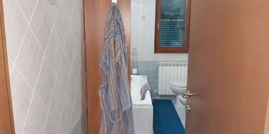 L'appartamento è composto da soggiorno, zona pranzo con angolo cottura, tre camere, due bagni, terrazzo.