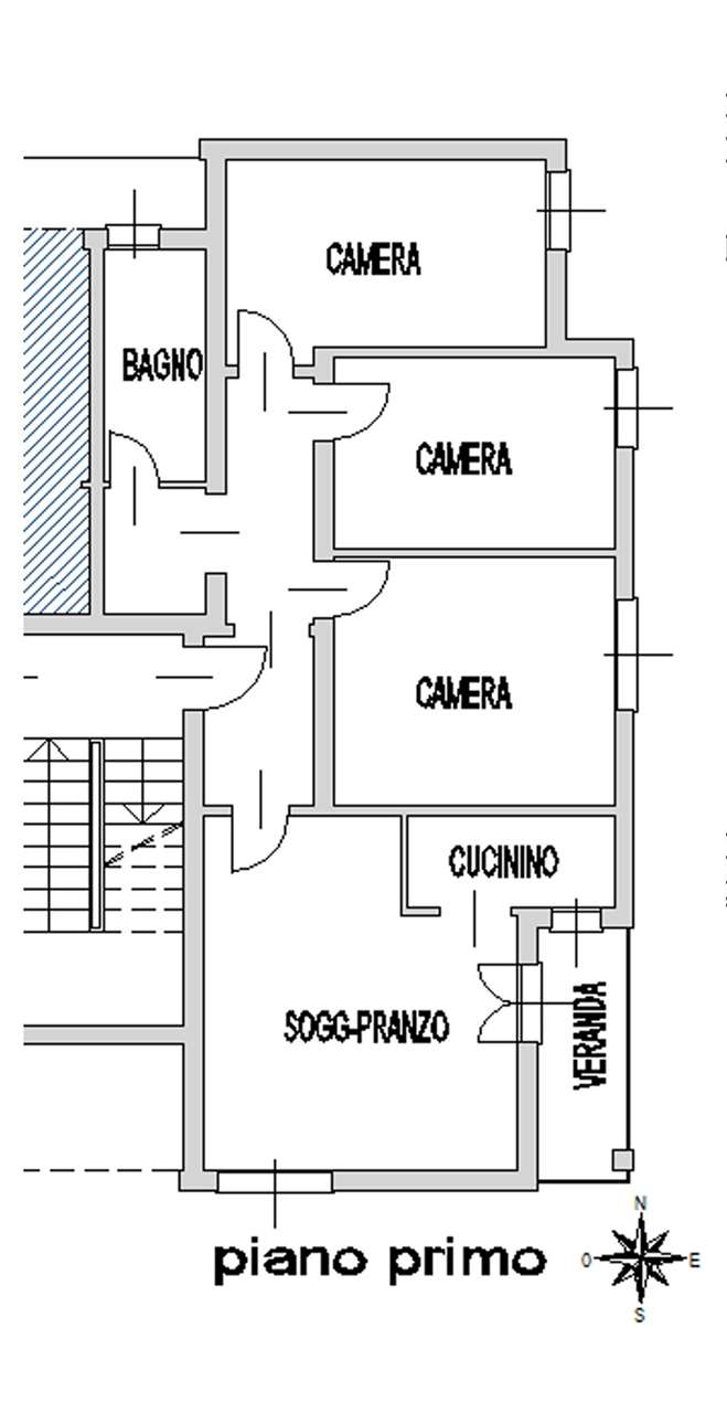 Composto da: ingresso, soggiorno-pranzo, cucinino, disimpegno, camera matrimoniale, due camere doppie e bagno.