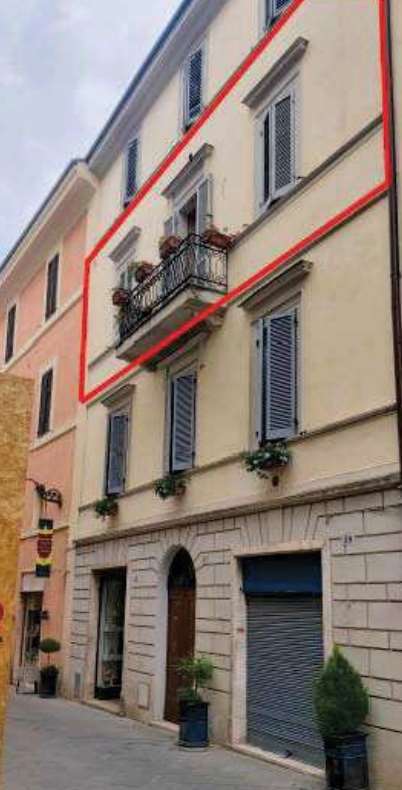 Unità abitativa sita in Spoleto (PG), Corso Mazzini n.57 (anche indicata in Via dello Sdrucciolo n.57) facente parte di un fabbricato residenziale costituito da quattro piani fuori terra (terra, primo, secondo e terzo), L’unità abitativa è posta al piano secondo ed è costituita da soggiorno con piccolo balcone aggettante su Corso Mazzini, cucina-zona pranzo, n.3 servizi igienici, n.2 camere doppie ed una camera singola, per una superficie commerciale di mq. 167.