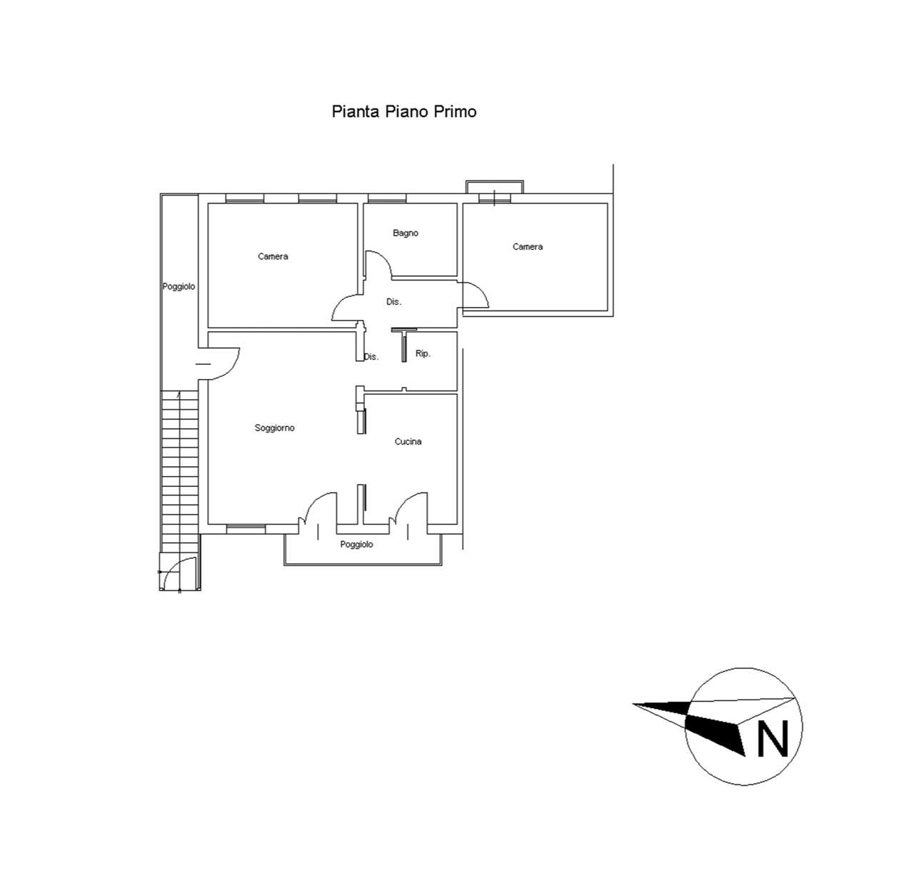 Appartamento ad uso residenziale posto al piano primo, zona giorno composta da soggiorno e cucina con annesso poggiolo, piccolo disimpegno poi la zona notte dove vi sono due camere da letto, un bagno e un ripostiglio.