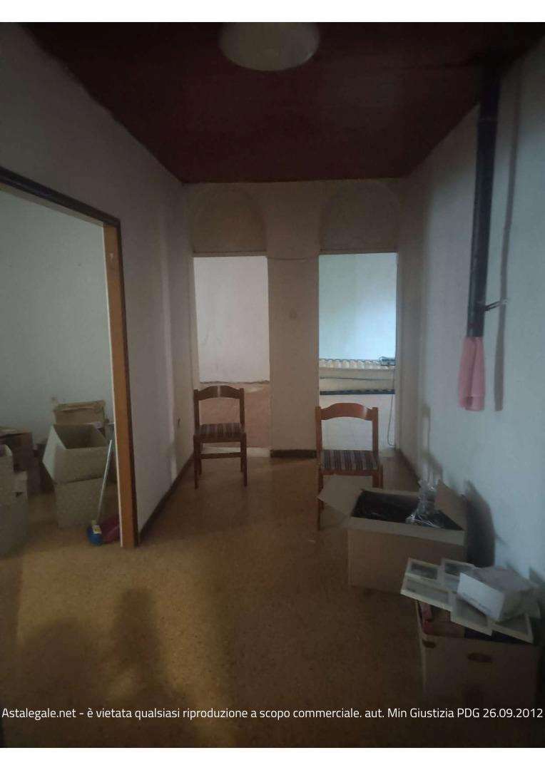 appartamento a civile abitazione al primo ed ultimo piano. Il bene, avente un portoncino di ingresso ubicato a sinistra per chi sale le scale, risulta composto da un ampio disimpegno centrale che permette l’accesso ai vari vani che compongono l’unità immobiliare. Entrando a sinistra è collocato un ampio soggiorno con una zona cottura comunicante con un piccolo balcone e con il servizio igienico posti sul retro del fabbricato. In fondo al disimpegno sono presenti due grandi camere e sulla destra, tramite un vano di passaggio, trovano collocazione ulteriori due camere.