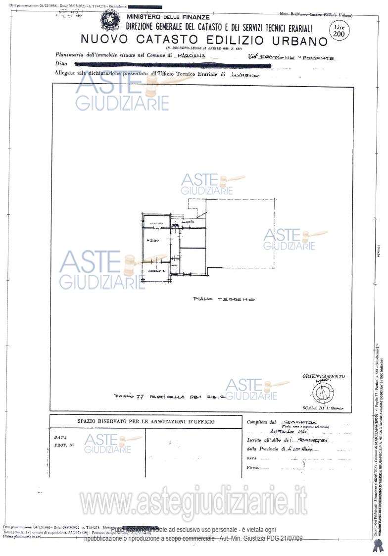 Porzione immobiliare a destinazione residenziale posta al piano terra di un fabbricato di due piani, ubicato nel Comune di Marciana dell’Isola d’Elba (LI), frazione di Pomonte, in Via dell’Aia n. 7, costituita da un appartamento per civile abitazione composto da ingresso/disimpegno, soggiorno ampio con lato cottura a vista di complessivi 28 mq. circa, terrazza coperta (loggia) con vista mare di circa 11 mq, camera matrimoniale di mq. 14,38, camera singola di mq. 10,98 e bagno con finestra