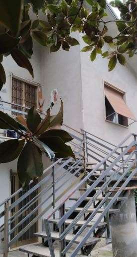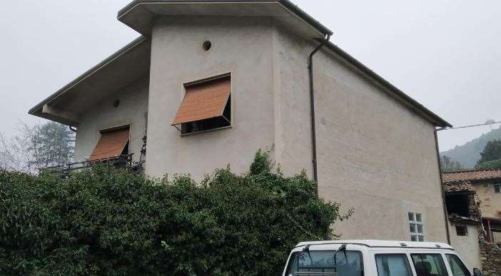 quota di 1/1 della piena proprietà su appartamento sito al piano primo di fabbricato di maggior mole elevato a due piani compreso il terrestre di mq 110,00 e proprietà esclusiva di due vani per soffitta non abitabili accessibili mezzo scala retrattile, oltre alla resede comune su tre lati. E' corredata altresì dai diritti pari ad 1/2 dell'intero su di un piccolo appezzamento di terreno di mq. 47,00