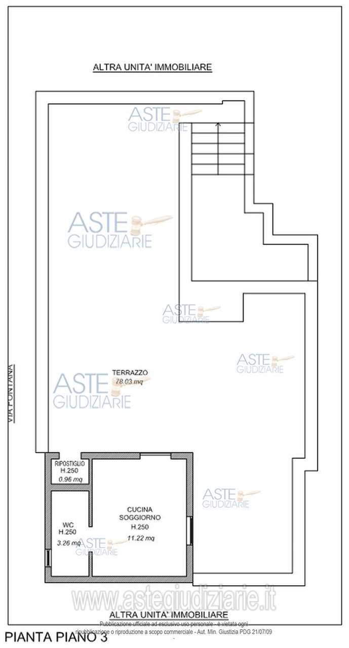 Piena e intera proprietà di appartamento posto al secondo ed ultimo piano del fabbricato. Si compone di cucina-soggiorno, tre camere da letto, due bagni, disimpegni due balconcini prospicienti Via Fontana, un terrazzo a livello, due ripostigli ed ulteriori due terrazzi di copertura a cui si accede da una scala che si diparte dal terrazzo a livello. null
