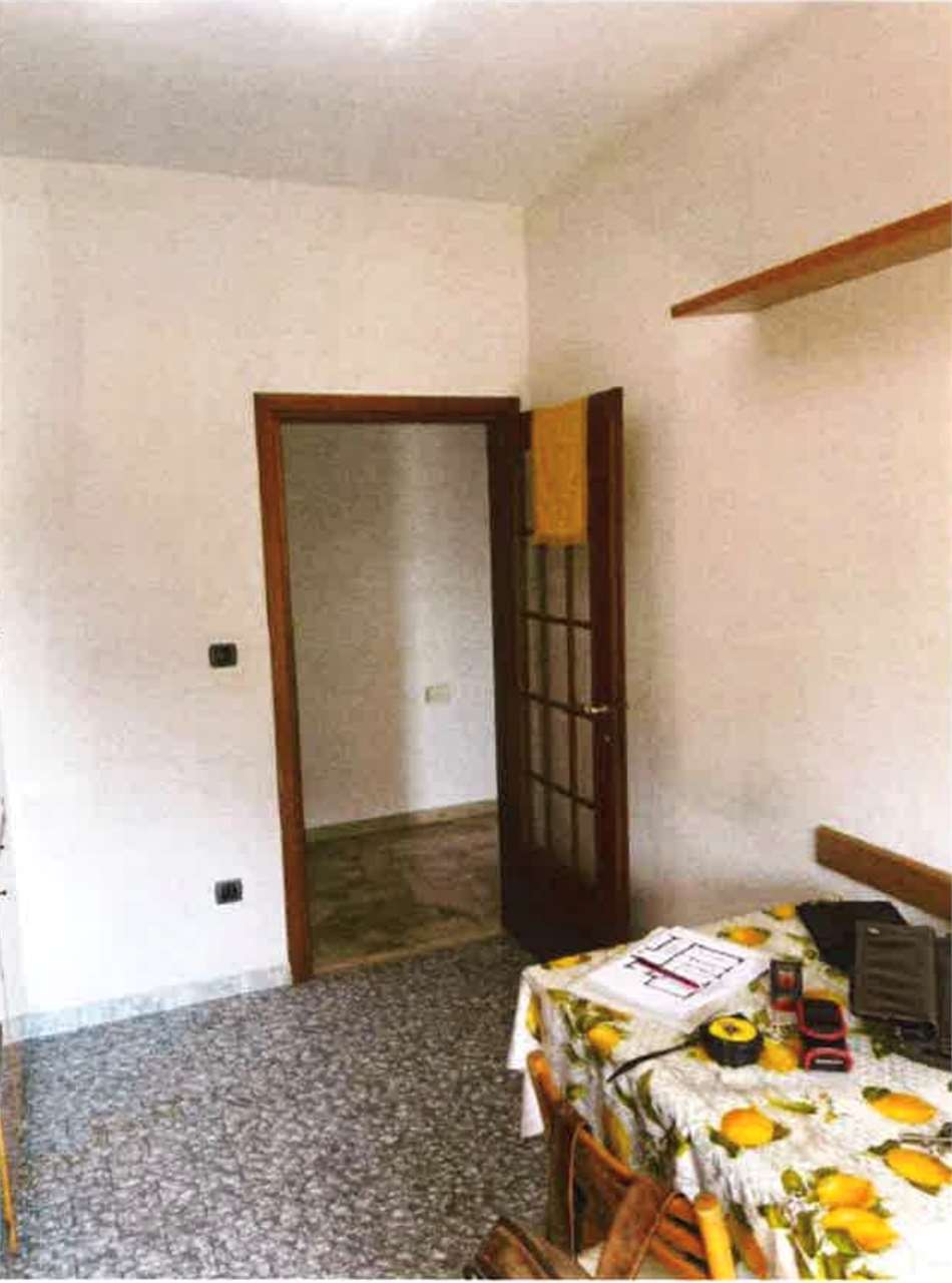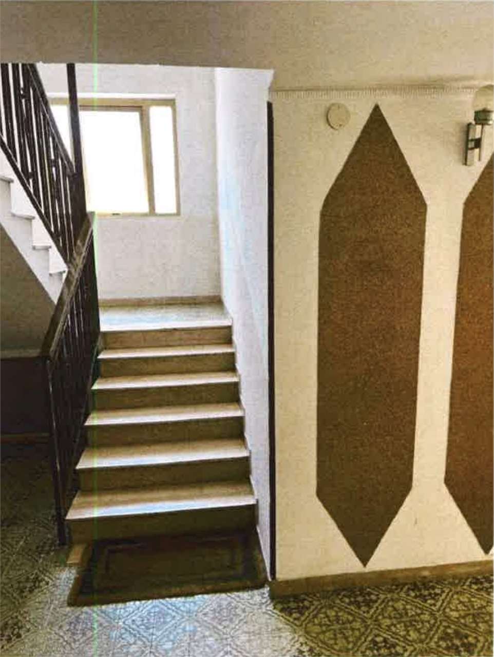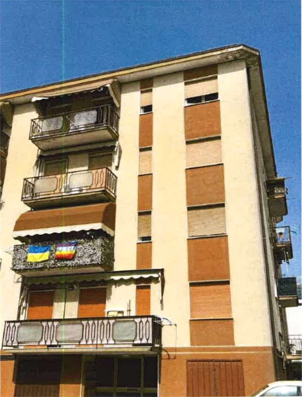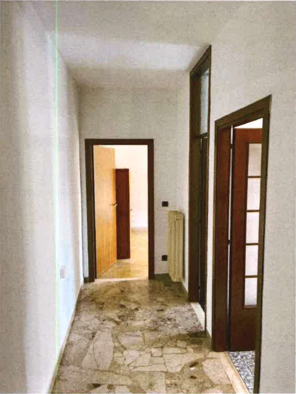 Appartamento al piano terzo di fabbricato condominiale, con annesso garage al piano terra, composto da: un corridoio, una cucina, un bagno, 2 stanze e poggiolo sul fronte est (accessibile dalla cucina e dalla stanza adiacente a sud). Il garage si trova al piano terra, presso l'angolo sud – est del fabbricato (il secondo verso ovest), ed è accessibile dallo scoperto condominiale carraio.