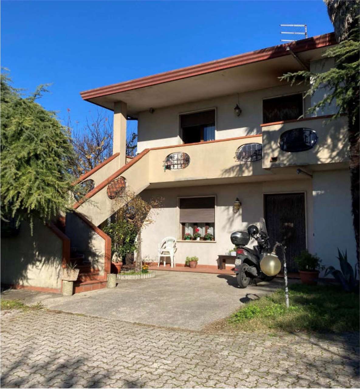 Appartamento al primo piano, di sup. tot. 162 mq, tot. escluse aree scoperte 154 mq in fabbricato composto da due unità residenziali, un garage e scoperto; composta da un ingresso, cucina / soggiorno, disimpegno, tre camere, un bagno, un wc, scala che collega il p. primo al p. terra di proprietà di altra ditta e due terrazze, una delle quali chiusa con veranda, l’ingresso all’abitazione avviene grazie ad una scala esterna che porta alla terrazza.