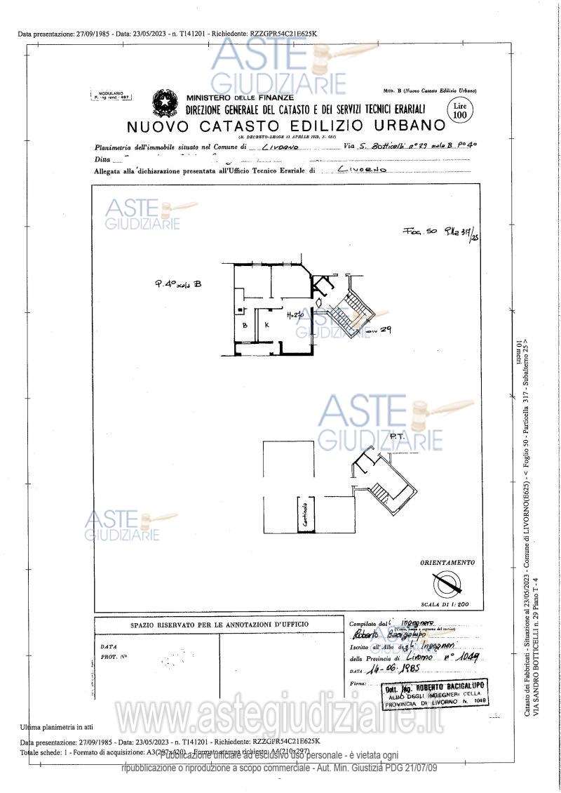piena proprietà di un’unità residenziale occupante porzione del quarto piano di un edificio per civile abitazione, di sette piani fuori terra, accessibile al num. civico 29 di Via Sandro Botticelli in Livorno. Il bene composto da ingresso-soggiorno con angolo cottura, disimpegno, due camere da letto, locale da bagno e ripostiglio, è poi completato dalla presenza di una loggia (abusivamente allestita a veranda) oltre che da una cantinetta posta al piano terra ed accessibile da area comune.