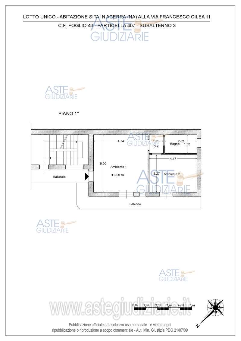 Abitazione sita in Acerra (NA), Via F. Cilea 11, piano 1, Catasto Fabbricati foglio 43, particella 407, sub 3, cat. A/3, cons. 3 vani, classe 2, sup. cat. 56 mq escluse aree scoperte 50 mq, rendita euro 170,43. Trattasi di un’abitazione, composto dai seguenti ambienti: soggiorno con angolo cottura, una camera da letto e un bagno, un balcone. Tutti gli ambienti residenziali sono ben dimensionati e sufficientemente aero-illuminati. NB: la Perizia di questo immobile NON è stata da noi preventivamente analizzata. I nostri professionisti effettueranno l’analisi a seguito del tuo contatto. Contattaci PRIMA DELLA VISITA: eviti inutili perdite di tempo derivanti da visite ad immobili occupati non liberabili in tempi brevi, con problemi bloccanti per il mutuo o costi eccessivi derivanti da immobile o costi di procedura. Acquista risparmiando, in modo informato semplice e sicuro. Specializzata in aste giudiziarie dal 2008, Dimorama partecipa mediamente a 3.500 aste ogni anno. Dimorama è stata definita dal pubblico (blog, recensioni, commenti) “la più affidabile del settore” con clienti soddisfatti e centinaia di recensioni Google a 5 stelle. Con Dimorama sei sicuro di poterti garantire un vero affare: prezzi bassi senza pensieri ne spese impreviste. Tu scegli l’immobile al resto pensiamo noi. Compra casa e risparmia, senza stress.