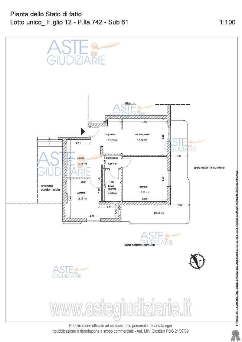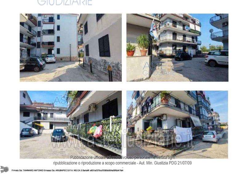 Piena ed intera proprietà di un immobile, appartamento, ubicato nel Comune di Casalnuovo di Napoli (NA) alla Via Vittorio Emanuele III n. 141/bis, già 163, identificato in C.F. di detto Comune al foglio 12, p.lla 742, sub. 61, cat. A/2, cl. 4, Vani 3,5, r.c. Euro 216,91. Il cespite staggito originariamente identificato con il sub 36 constava di 3 vani con ampia superfice esterna; con domanda di condono del 16/01/1995 prot. 1561 l’allora proprietà del cespite otteneva concessione edilizia in sanatoria n. 143 del 1996 per l'ampliamento dell'appartamento realizzato incorporando la superfice del terrazzo. Ad oggi l'unità immobiliare è composta da 4 vani oltre servizi ed accessori per una superficie complessiva di circa 65 mq escluso balcone, ha una pianta regolare di forma quadrata e gode di una doppia esposizione Nord/Ovest. L’appartamento in oggetto ha accesso dalla porta posta sulla destra del pianerottolo condominiale a cui si giunge percorrendo la rampa di scale, superata la quale, si accede ad un ingresso di circa 6,00 mq, procedendo verso ovest, di fronte alla porta di ingresso vi è il locale cucina/pranzo di 12 mq, mentre sulla destra dell'ingresso vi è la zona salotto di 10 mq. Da questo ambiante si accede ad una camera da letto e ad un disimpegno su cui afferiscono altra camera e locale igienico. Nello specifico: -ingresso di 5,87 mq; – locale cucina di 12,32 mq dotato di balcone esposto sul versante ovest con affaccio sull'area comune; – salotto di 10,18 mq; – camera matrimoniale di 12,15 mq con balcone esposto a Nord ed affaccio sull'area comune, tale consistenza è stata realizzata inglobando parte del balcone nella superficie utile abitabile; disimpegno di 1,88 mq; – camera da letto di 15,32 mq con balcone esposto ad Ovest; – locale igienico di 4,40 mq con finestra che affaccia nella camera matrimoniale. L'immobile oggetto della presente procedura esecutiva è ubicato nel Comune di Casalnuovo di Napoli (NA), più precisamente a Licignano, in zona centrale, alla Via Vittorio Emanuele III n. 141/bis; il Comune di Casalnuovo di Napoli fa parte della conurbazione napoletana e si trova in immediata adiacenza del capoluogo a circa 10 chilometri a nord di Napoli. Negli ultimi decenni la città ha subito profonde trasformazioni a seguito del vertiginoso aumento della popolazione residente generato da un’elevata offerta abitativa che ha intercettato negli anni la insoddisfatta domanda dei comuni contermini e della città di Napoli. La via in cui è ubicato il cespite è l’asse viario principale di Licignano, caratterizzato da costruzioni di tipo civile e dotato di tutti i servizi principali. Il cespite staggito fa parte di un edificio posto nel "Parco delle Palme" composto da diversi fabbricati, quello di interesse è il fabbricato B di quattro piani fuori terra con destinazione residenziale ed un piano seminterrato destinato a box. Una ampia area esterna comune è destinata ai percorsi pedonali e carrabili ed aree dedicate per il parcheggio, sono estremamente ridotte le aree a verde. L'immobile fa parte di un fabbricato individuato con la lettera "B" e costituito da quattro livelli fuori terra. Il cespite oggetto della presente relazione è ubicato al piano rialzato ed è individuato con l'interno n. 2.