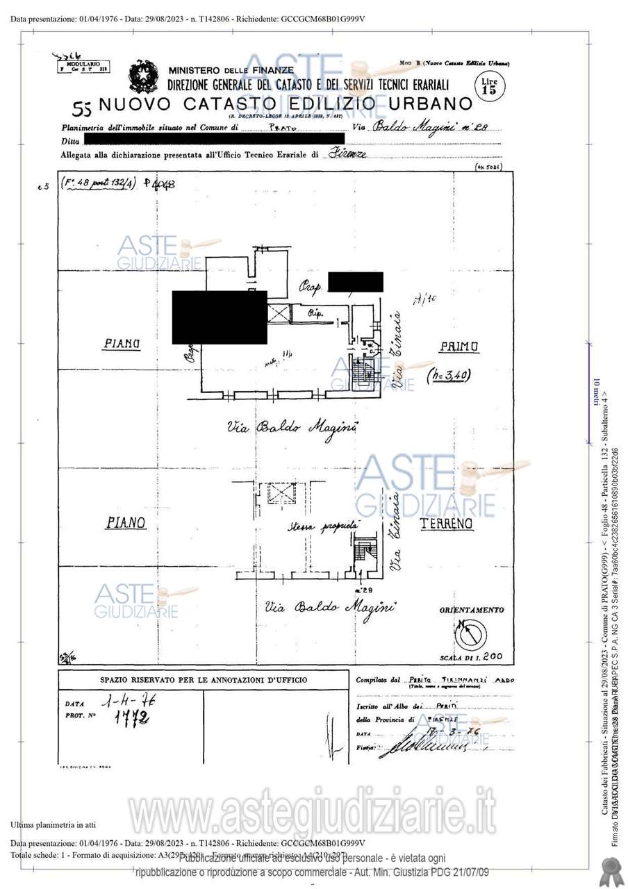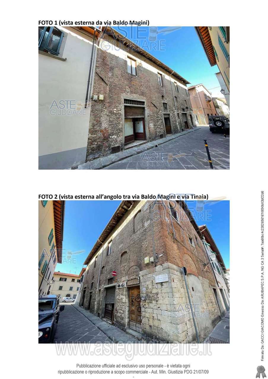 Piena proprietà di una unità immobiliare a uso ufficio/studio privato, posta ai piani terra e primo, facente parte di un fabbricato terratetto, su due livelli fuori terra, oltre piano interrato, di remota costruzione sita in Prato, via Baldo Magini, 28 composta da ampio locale principale, con quattro ulteriori vani ad uso ripostiglio, oltre servizio igienico e piccolo ingresso al piano terra