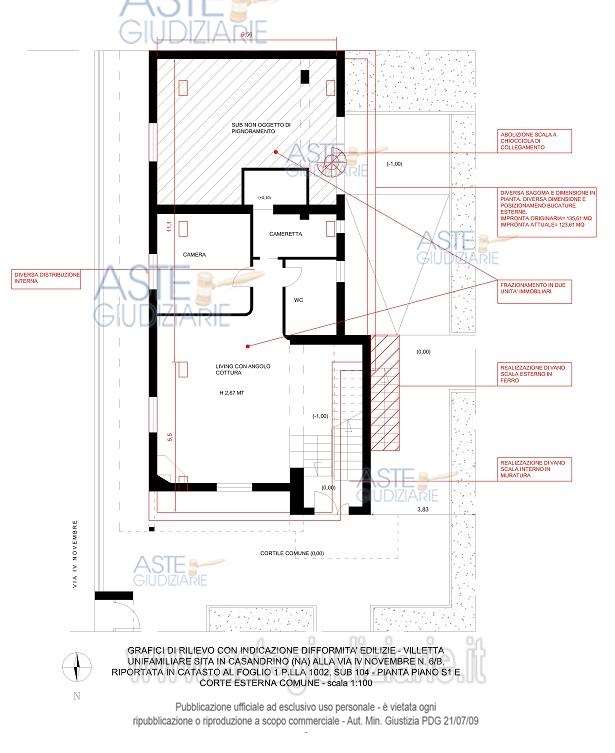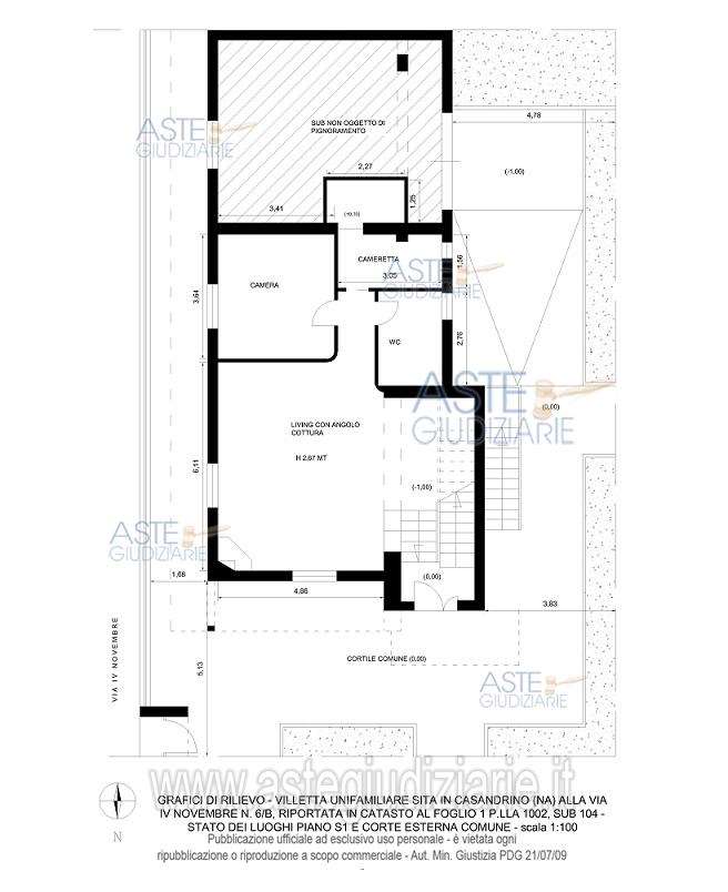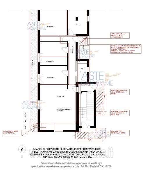 Piena ed intera proprietà di una villetta unifamiliare distribuita su due livelli (S1-1), sita nel Comune di Casandrino (NA), alla via IV Novembre n. 6/B; la villetta è composta, al piano seminterrato, da una zona living con angolo cottura e camino a legna, due camere ed un wc; il collegamento con il piano primo avviene internamente attraverso un vano scala comune. E’, altresì, possibile accedere al piano primo mediante una rampa scale esterna in ferro. Il piano primo è composto da living con angolo cottura, corridoio, tre camere da letto, due wc e due balconi prospicienti i lati est ed ovest. L’accesso alla villetta avviene direttamente da via IV Novembre n. 6/B mediante un cancello pedonale ed uno carrabile in ferro, i quali immettono nella corte esterna attraverso un cortile esterno comune. Superficie commerciale totale mq. 165,40 (piano S1, mq 62,11 – piano 1, mq. 103,29). NB: la Perizia di questo immobile NON è stata da noi preventivamente analizzata. I nostri professionisti effettueranno l’analisi a seguito del tuo contatto. Contattaci PRIMA DELLA VISITA: eviti inutili perdite di tempo derivanti da visite ad immobili occupati non liberabili in tempi brevi, con problemi bloccanti per il mutuo o costi eccessivi derivanti da immobile o costi di procedura. Acquista risparmiando, in modo informato semplice e sicuro. Specializzata in aste giudiziarie dal 2008, Dimorama partecipa mediamente a 3.500 aste ogni anno. Dimorama è stata definita dal pubblico (blog, recensioni, commenti) “la più affidabile del settore” con clienti soddisfatti e centinaia di recensioni Google a 5 stelle. Con Dimorama sei sicuro di poterti garantire un vero affare: prezzi bassi senza pensieri ne spese impreviste. Tu scegli l’immobile al resto pensiamo noi. Compra casa e risparmia, senza stress.