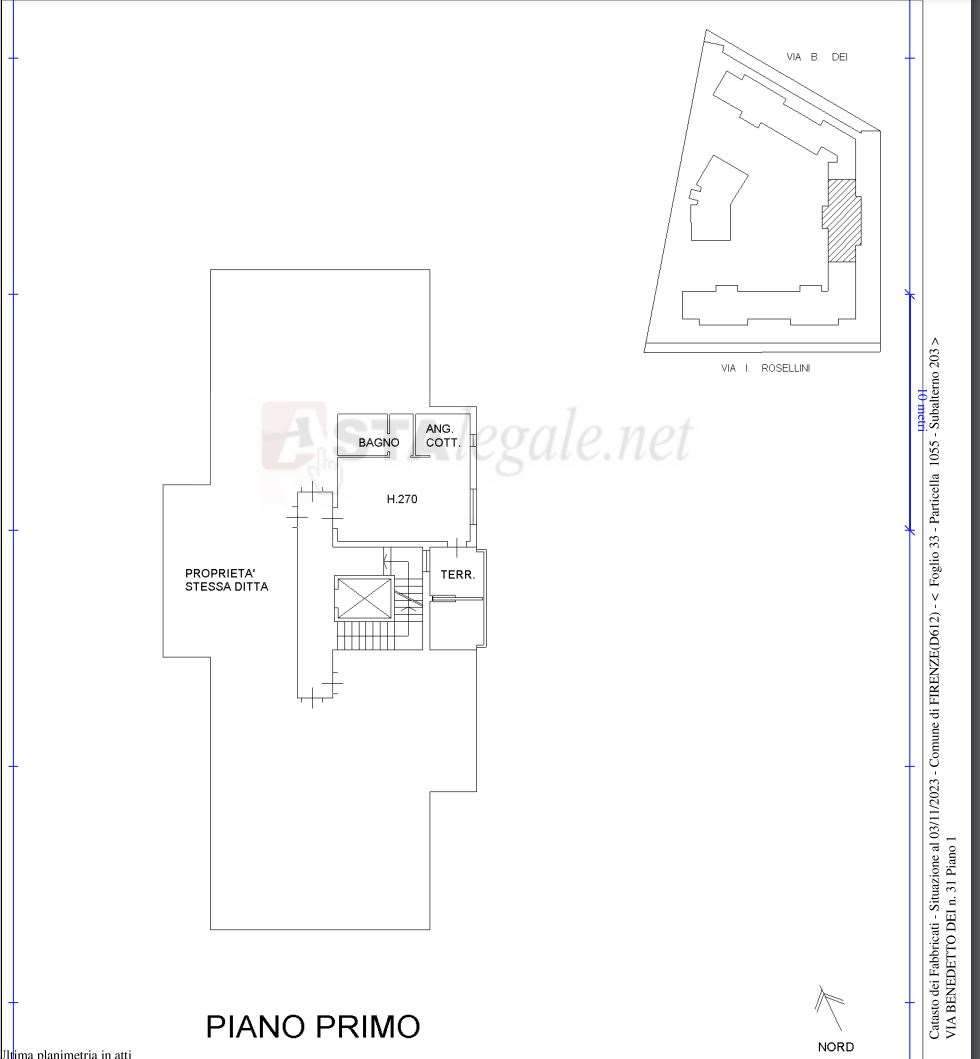 Diritto di PIENA PROPRIETA’ di Appartamento ad uso civile abitazione con accesso da via Benedetto Dei n. 31, posto al…